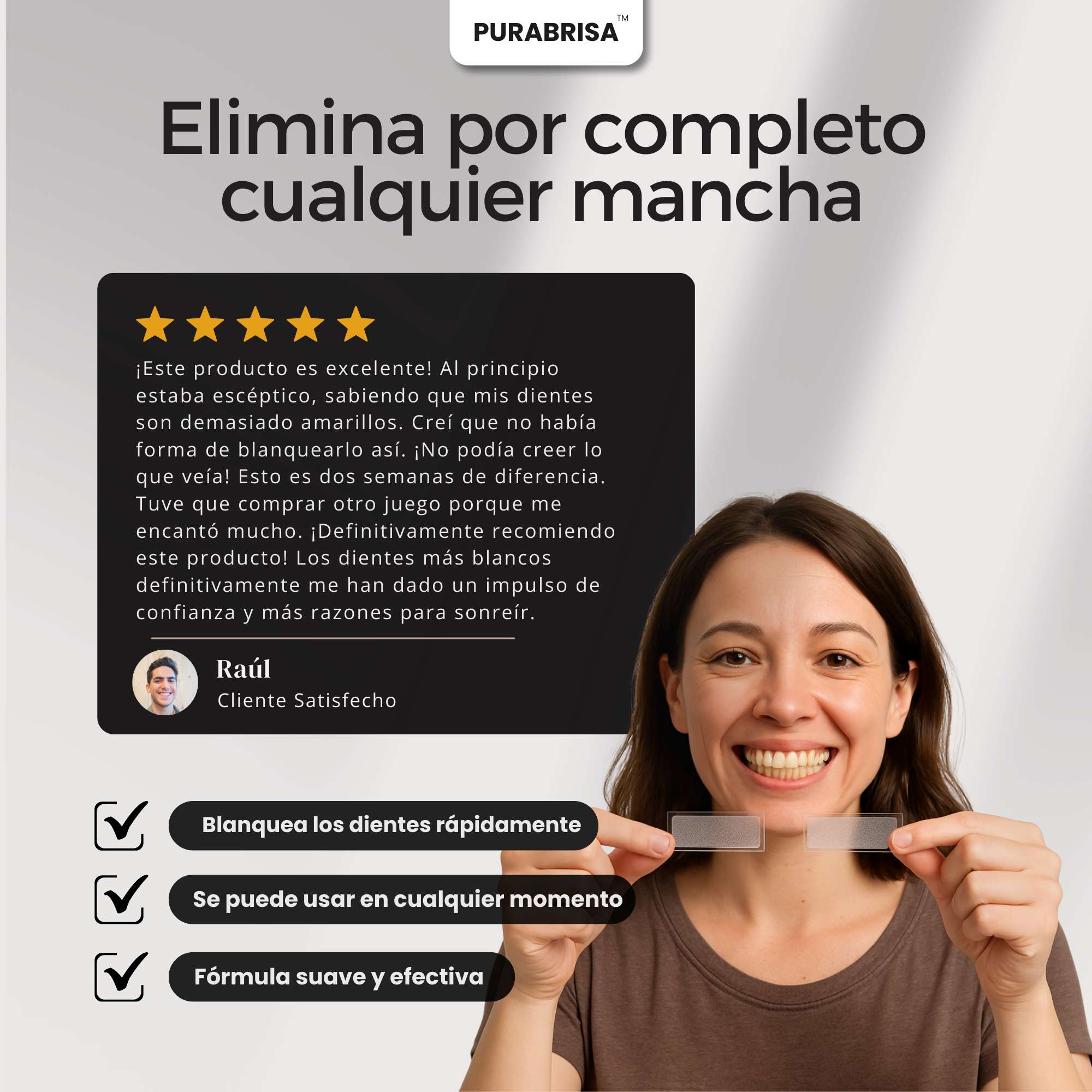 Descubre el poder de PURABRISA 5D, un tratamiento blanqueador avanzado que transforma tu sonrisa de forma progresiva. Verás resultados desde los 14 días desde casa, con un efecto completo en hasta 1 mes, sin sensibilidad ni complicaciones.Confiamos tanto en nuestra fórmula que te damos una garantía de 30 días. Y esto es solo el comienzo: muy pronto, lanzaremos ofertas exclusivas para que cuidar tu sonrisa sea aún más fácil y mucho mas accesible.PURABRISA — tu nueva forma de brillar con confianza.